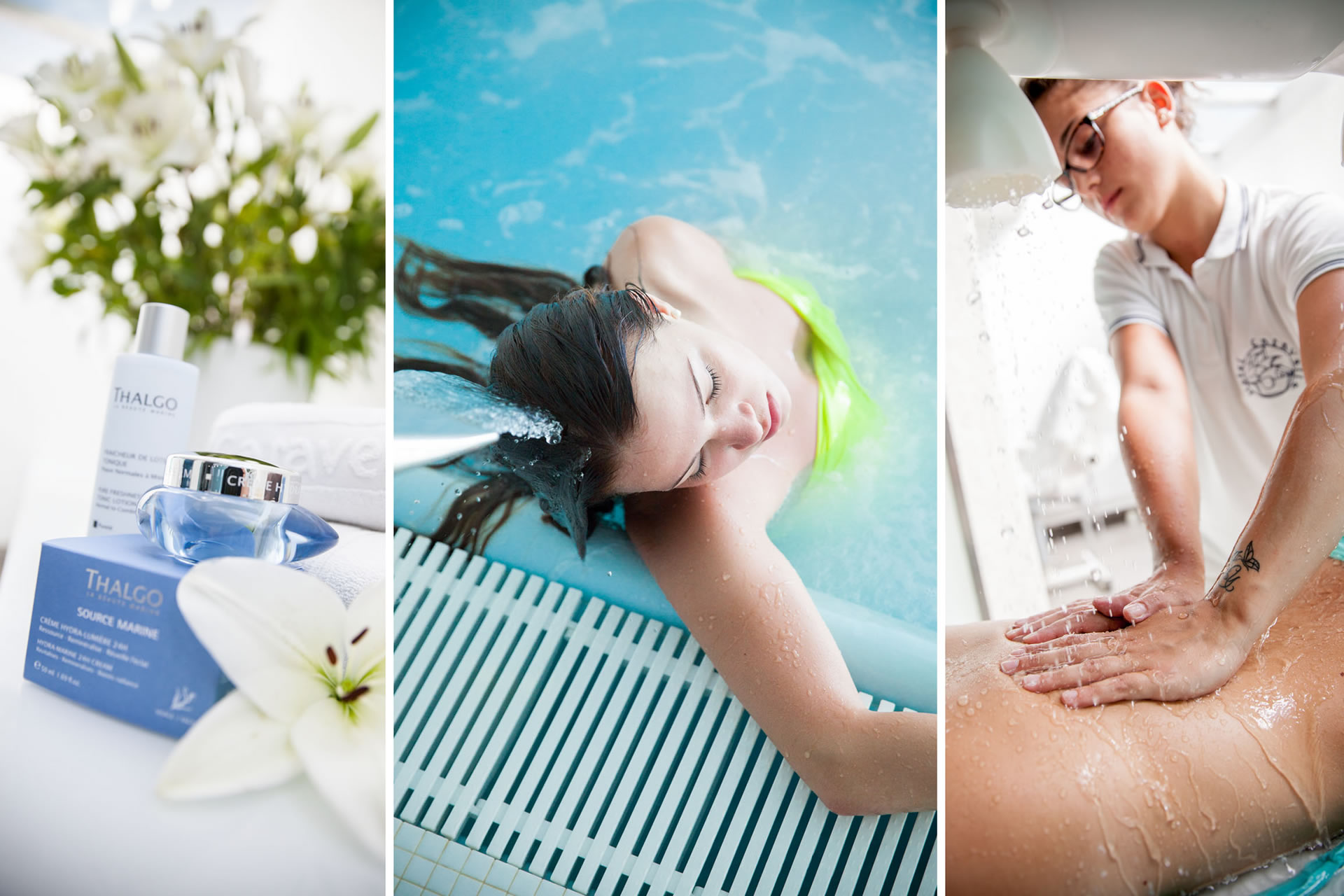 I benefici dell'ambiente marino a scopo preventivo e curativo, anche fuori dalle piscine, sfruttando la combinazione di acqua, fanghi, alghe e altre sostanze estratte dal mare.